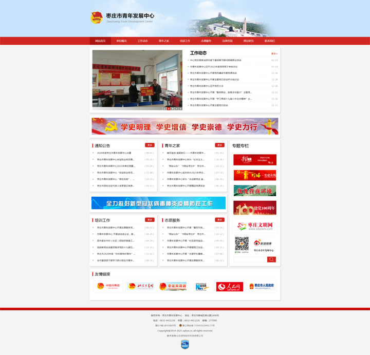 | 棗莊市青年發(fā)展中心的前身為棗莊市團(tuán)校,成立于1981年,是一所以培養(yǎng)共青團(tuán)干部和青年人才為主業(yè)的青年干部培訓(xùn)學(xué)校。坐落于棗莊市薛城區(qū)泰山路,占地20余畝,建筑面積12000平方米。 建校以來,在上級(jí)黨團(tuán)組織的關(guān)心和支持下,我們始終堅(jiān)持正確的辦學(xué)方向,以培養(yǎng)具有較高理論素養(yǎng)和工作能力的青年人才為己任,銳意創(chuàng)新、積極進(jìn)取,全面落實(shí)服務(wù)大局、服務(wù)社會(huì)、服務(wù)青少年的各項(xiàng)任務(wù);緊密結(jié)合廣大團(tuán)員青年的學(xué)習(xí)需求,不斷創(chuàng)新培訓(xùn)模式,充分發(fā)揮陣地作用,創(chuàng)造性地組織開展了形式新穎、內(nèi)容豐富的培訓(xùn)活動(dòng);采取長短結(jié)合、內(nèi)外結(jié)合、與經(jīng)濟(jì)發(fā)達(dá)地區(qū)聯(lián)合等多種形式,不斷拓寬辦學(xué)領(lǐng)域,擴(kuò)大辦學(xué)規(guī)模,提高辦學(xué)質(zhì)量,先后舉辦了職業(yè)中專班、軍地人才班和成人學(xué)歷班;不斷豐富工作內(nèi)容,提升培訓(xùn)質(zhì)量,逐步形成了以團(tuán)干部培訓(xùn)為主,青少年研究、青少年素質(zhì)拓展、青年志愿者培訓(xùn)、成人學(xué)歷教育,“四位一體”的辦學(xué)格局。 2003年3月團(tuán)市委在市團(tuán)校設(shè)立“棗莊市青春創(chuàng)業(yè)指導(dǎo)中心”;2004年9月,棗莊電大市團(tuán)校分校成立;2005年6月團(tuán)市委在市團(tuán)校設(shè)立全市首批“學(xué)士后流動(dòng)站”;2010年初在北京大學(xué)的幫助與指導(dǎo)下,市團(tuán)校成立了青少年素質(zhì)拓展培訓(xùn)基地。同時(shí),市團(tuán)校積極響應(yīng)市委、市政府號(hào)召,圍繞中心、服務(wù)大局,充分發(fā)揮自身優(yōu)勢(shì),配合市、區(qū)農(nóng)業(yè)局、勞動(dòng)局,先后承擔(dān)了農(nóng)村勞動(dòng)力轉(zhuǎn)移、“陽光工程”培訓(xùn)班。 三十多年來,市團(tuán)校完成了25000余名團(tuán)干部和3000余名大中專學(xué)生的教學(xué)培訓(xùn)任務(wù),向蘇州、上海、煙臺(tái)等經(jīng)濟(jì)發(fā)達(dá)地區(qū)輸送高素質(zhì)的青年勞務(wù)人員近1000人,累計(jì)培訓(xùn)各類青年農(nóng)民1500人次,開設(shè)中央電大“開放教育”本、?茖I(yè)20多個(gè),學(xué)員近1000人,開展素質(zhì)拓展培訓(xùn)5000余人,成功舉辦兩屆全市青年攀巖比賽,受到了社會(huì)各界的一致好評(píng)。 2017年3月,棗莊市“青年之家”在市團(tuán)校建成投入運(yùn)行,設(shè)置法律維權(quán)、心理咨詢、婚戀交友、志愿服務(wù)、傳統(tǒng)文化教育和素質(zhì)拓展六大模塊,是棗莊共青團(tuán)面向社會(huì)、面向青少年的多功能、復(fù)合型、綜合性服務(wù)平臺(tái),是團(tuán)組織使用管理的公益性、綜合性服務(wù)場(chǎng)所。 2017年8月,棗莊市團(tuán)校更名為棗莊市青年發(fā)展中心。展望未來,我們信心百倍,全體教職工將繼續(xù)圍繞黨政中心工作大局,以更加奮發(fā)有為的精神狀態(tài),開拓進(jìn)取、奮力拼搏,立身自身實(shí)際,發(fā)揚(yáng)優(yōu)良傳統(tǒng),在新的征程上邁出新步伐,再上工作新臺(tái)階,再創(chuàng)事業(yè)新輝煌。