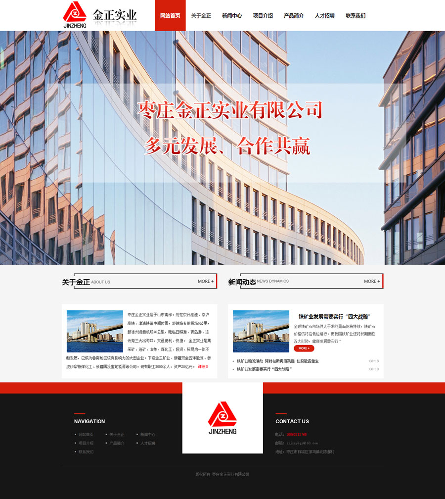 祝賀金正實(shí)業(yè)有限公司網(wǎng)站上線 公司介紹: 棗莊金正實(shí)業(yè)位于山東南部。處在京臺(tái)高速、京滬高鐵、津浦鐵路中間位置,距鐵路專用貨場(chǎng)5公里,距徐州觀音機(jī)場(chǎng)70公里,毗臨日照港、青島港、連云港三大出海口,交通便利、快捷。 金正實(shí)業(yè)是集采礦、選礦、冶煉、煤化工、投資、貿(mào)易為一體不斷發(fā)展,已成為魯南地區(qū)較有影響力的大型企業(yè)。下設(shè)金正礦業(yè)、新疆雙全五洋能源、并參股伊犁特煤化工、新疆國投寶地能源等公司,F(xiàn)有職工3000余人,資產(chǎn)20億元。先后獲得棗莊百強(qiáng)企業(yè)、突出貢獻(xiàn)企業(yè)、誠信經(jīng)營(yíng)企業(yè)、納稅十強(qiáng)企業(yè)、山東省工會(huì)工作先進(jìn)企業(yè)等榮譽(yù)稱號(hào)。 金正礦業(yè)年產(chǎn)鐵精粉60萬噸,金正實(shí)業(yè)年產(chǎn)鑄造用生鐵26萬噸,主要銷往江蘇、浙江、福建、安徽、河北、山東等地,深受廣大客戶好評(píng)。 公司始終秉承“多元發(fā)展、合作共贏”的經(jīng)營(yíng)理念,遵循“精誠團(tuán)結(jié)、銳意進(jìn)取”的企業(yè)精神。竭誠為客戶提供優(yōu)質(zhì)的產(chǎn)品和服務(wù)。真誠歡迎各界同仁前來指導(dǎo)、合作,我們?cè)概c您風(fēng)雨同舟、攜手共創(chuàng)美好未來。 棗莊金正實(shí)業(yè)有限公司
